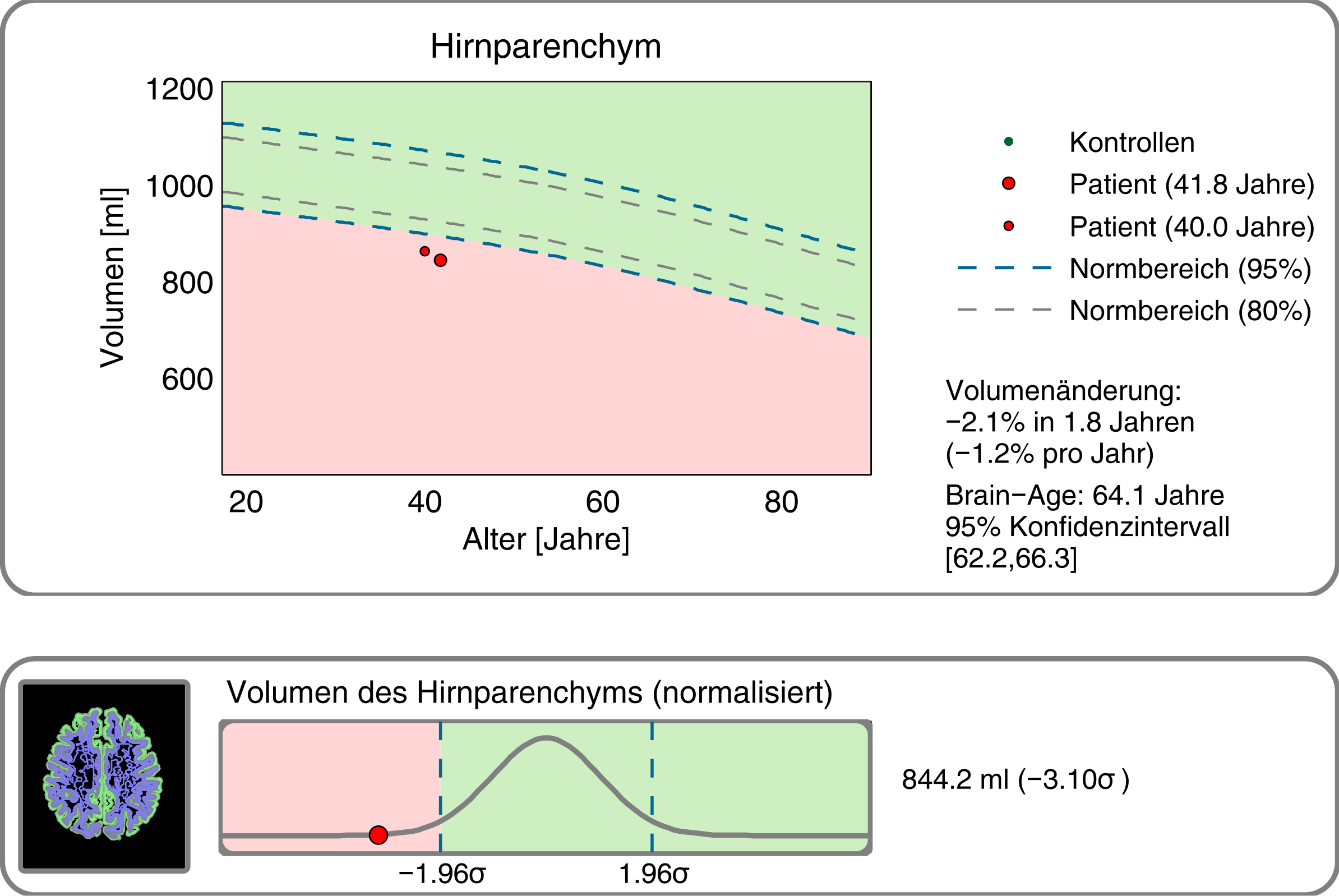 If the findings are inconspicuous (normal hippocampal volume), incipient Alzheimer's dementia can be ruled out with a high degree of probability at present (Suppa et al. 2015a) and for the next three years (Suppa et al. 2015b).